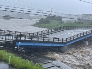 橋の手前で迂回していたところ、聞いたことのない変な大きな音がしました。