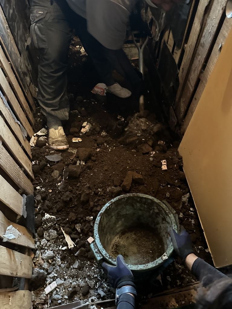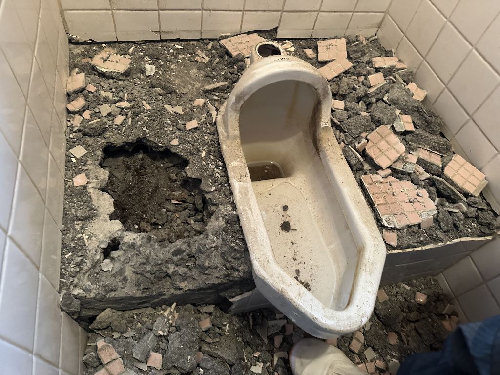更に解体・撤去!うん?タイルの下が全て砂で埋めてありました。こういうこともあるんです・・・大抵は、木で組まれていて空洞になっています。