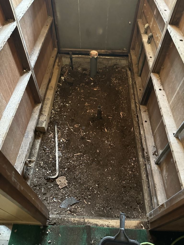 何度か?このような現場に遭遇しました。シロアリや虫も、土や砂で案内していしまっています。とにかく解体・撤去作業になります。