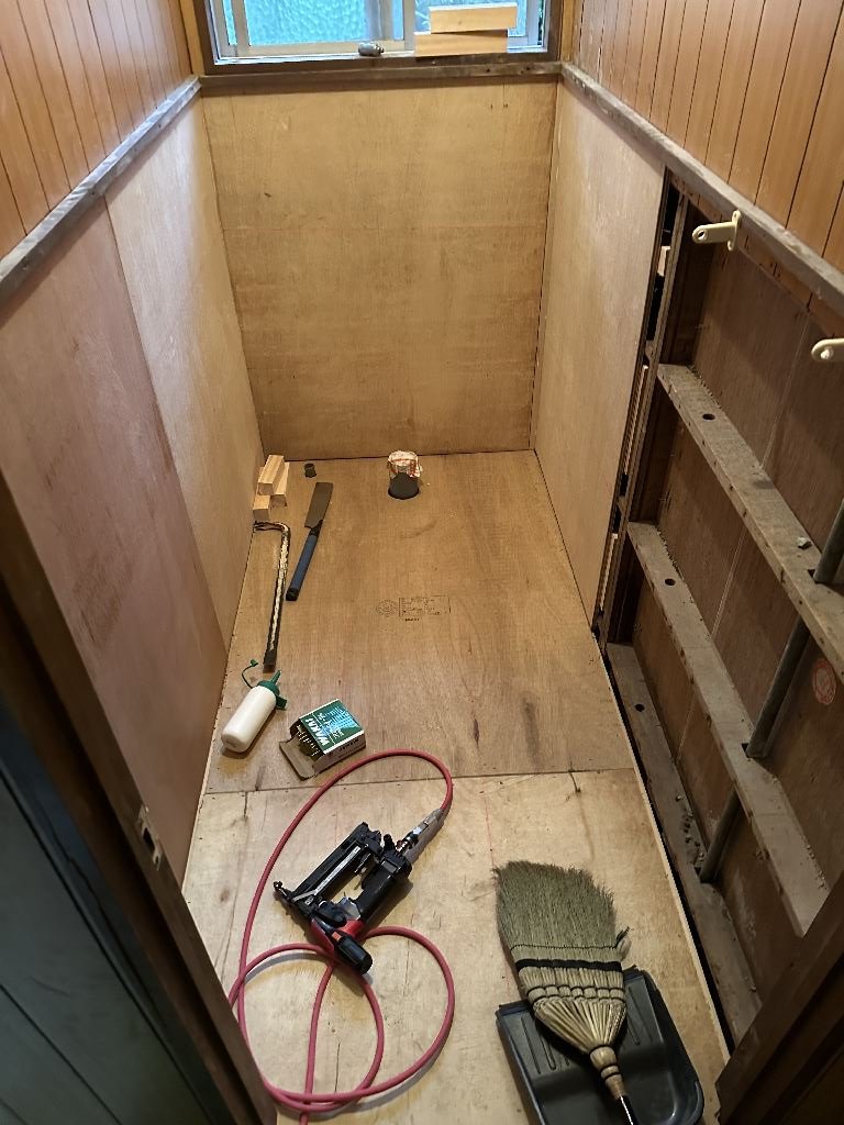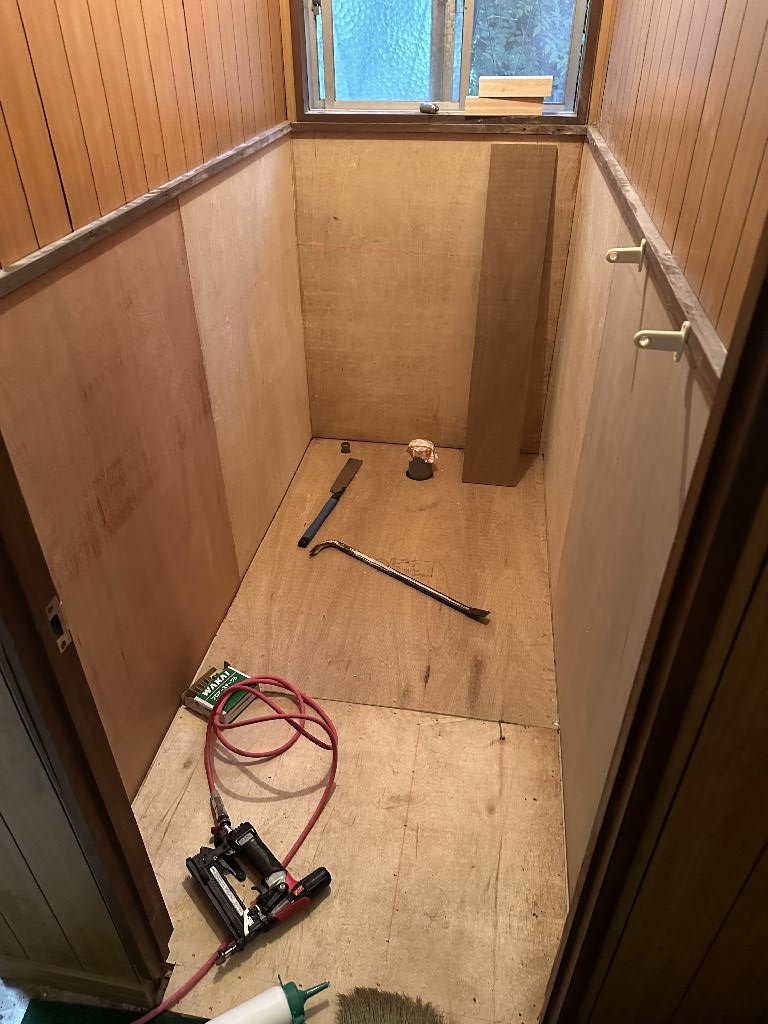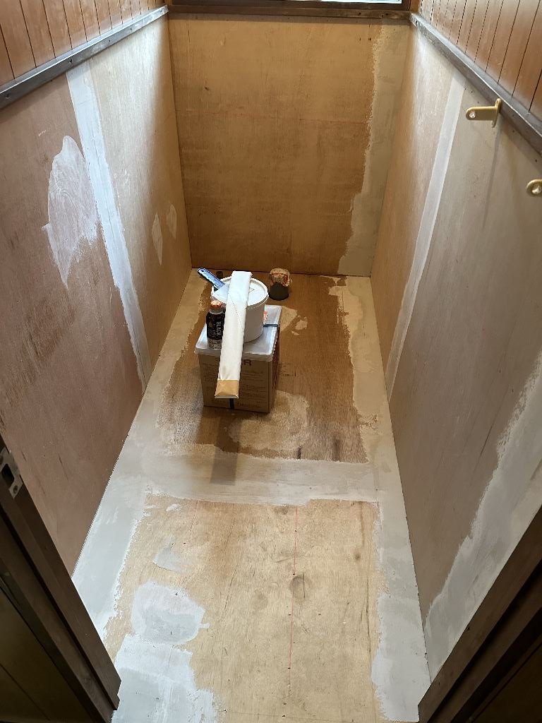 床にCF(クッションフロア)を貼って、内装完成になります。