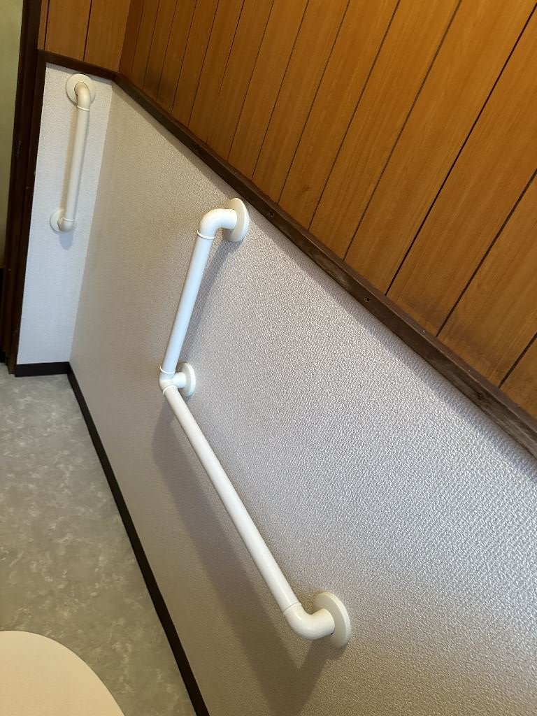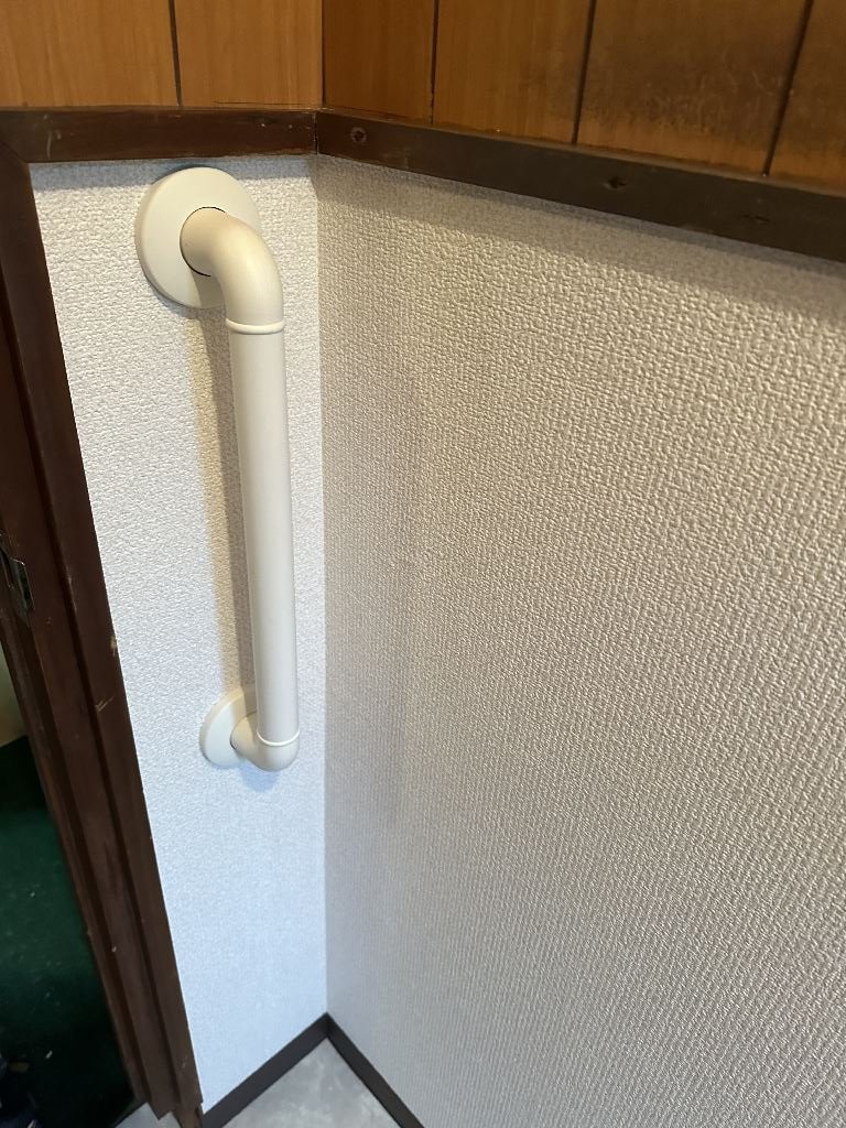 更には広いトイレなので、出入口付近にもI型手すりを取付けました。