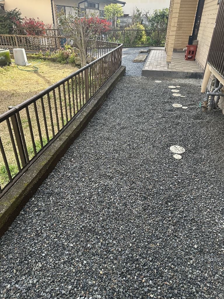 毎年毎年、春と秋が無くなってしまったような気候。そして1年の半分ぐらいある夏季。その度に草刈り・草取りをしなければならないんです。そんな生活が嫌になってしまいました。我家の庭を全て、雑草が生えてこないようにしてください。家に来るまでの道が狭過ぎて、大きい車が通貨することができません。その辺も考慮してお願いします。