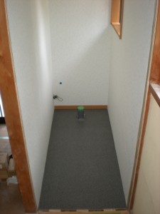 3.内装やさんがクロスとクッションフロアーを貼り、仕上げ。