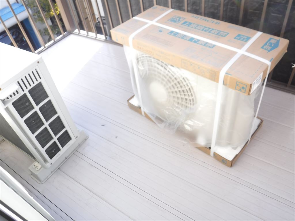 ここはベランダに室外機を取付けました。