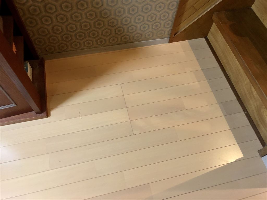 | 工事内容 | 床 重ね上貼り補修工事 ダイケン フロア フォレスティア 色:ミルベージュ |