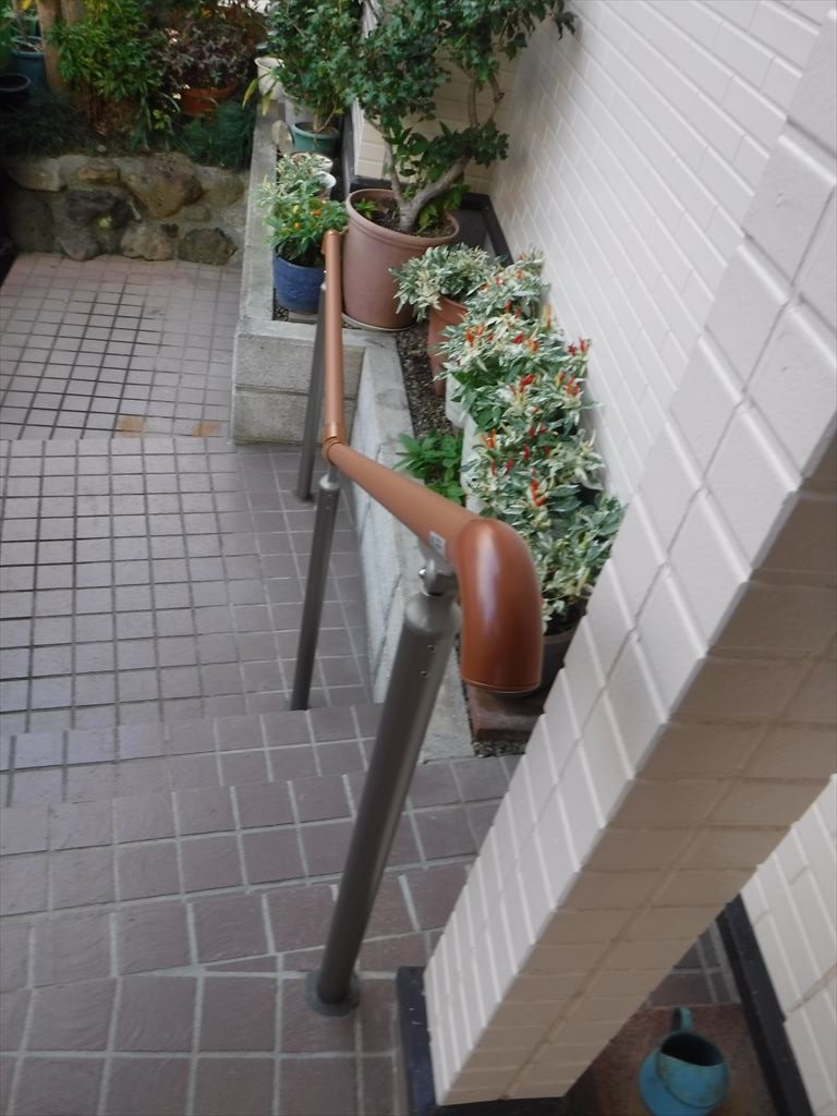 | 工事内容 | 自宅前道路⇒玄関アプローチまでの階段 手すり取付 LIXIL グリップライン |