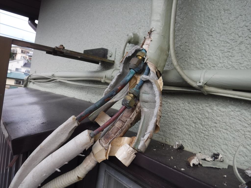 屋根の葺替え工事の前に、エアコンと室外機を撤去致しました。