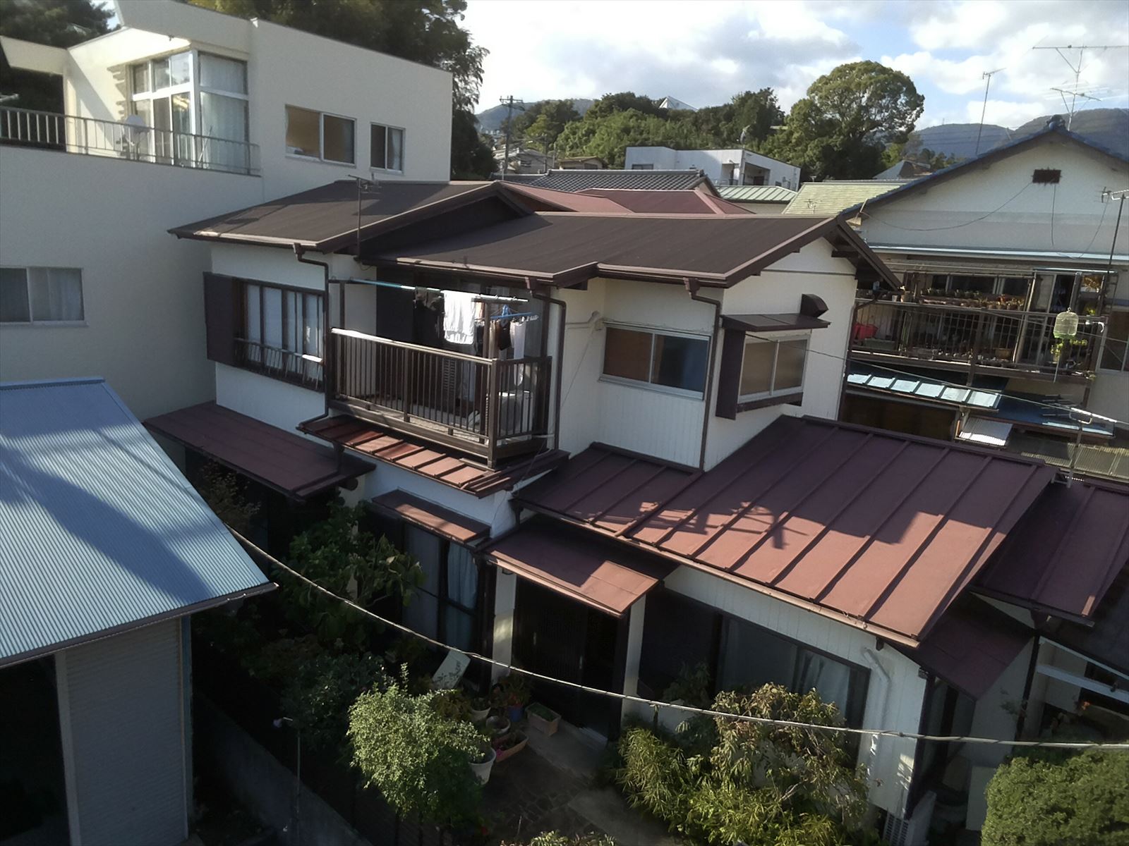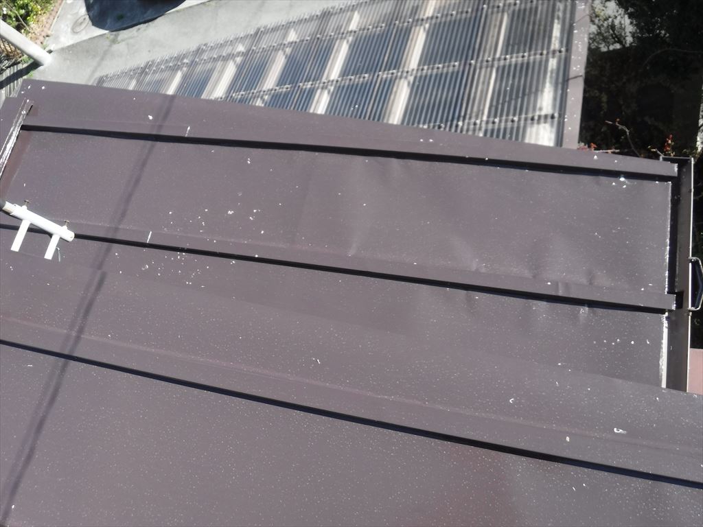 | 工事内容 | 下屋根塗装工事 桟葺きトタン屋根 塗装 |