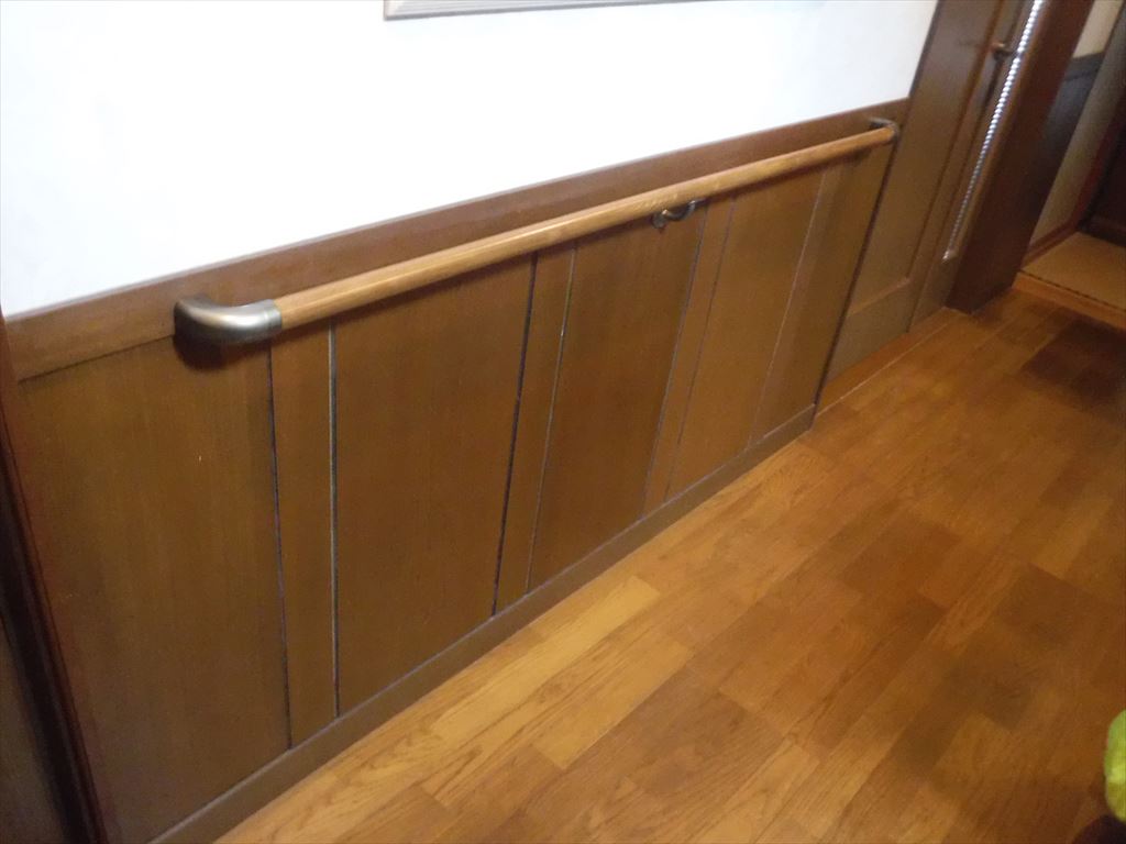 脳塞栓で倒れて、5ヶ月間もの入院生活を送りました。退院するに当たってどうしても、この玄関を通過しての生活になります。突然倒れたもので、入院費用も嵩み何も考えられないでいましたが・・・介護保険を活用しての改装工事が、ここで活用できることを聞いて実施することに致しました。道路から玄関までの通路に手すりを取付けてください。介護する家内にも負担になってしまいます。トイレや浴室に行くときに必ず通る廊下。この廊下にも手すりを取付けてください!