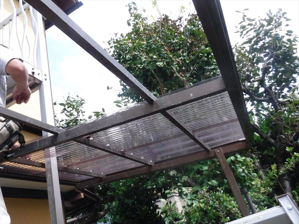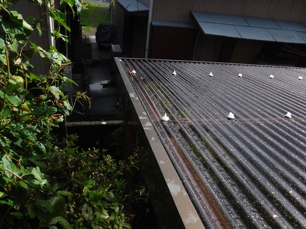 何度かポリカが飛んだので、雨樋とか針金で固定しておりました。