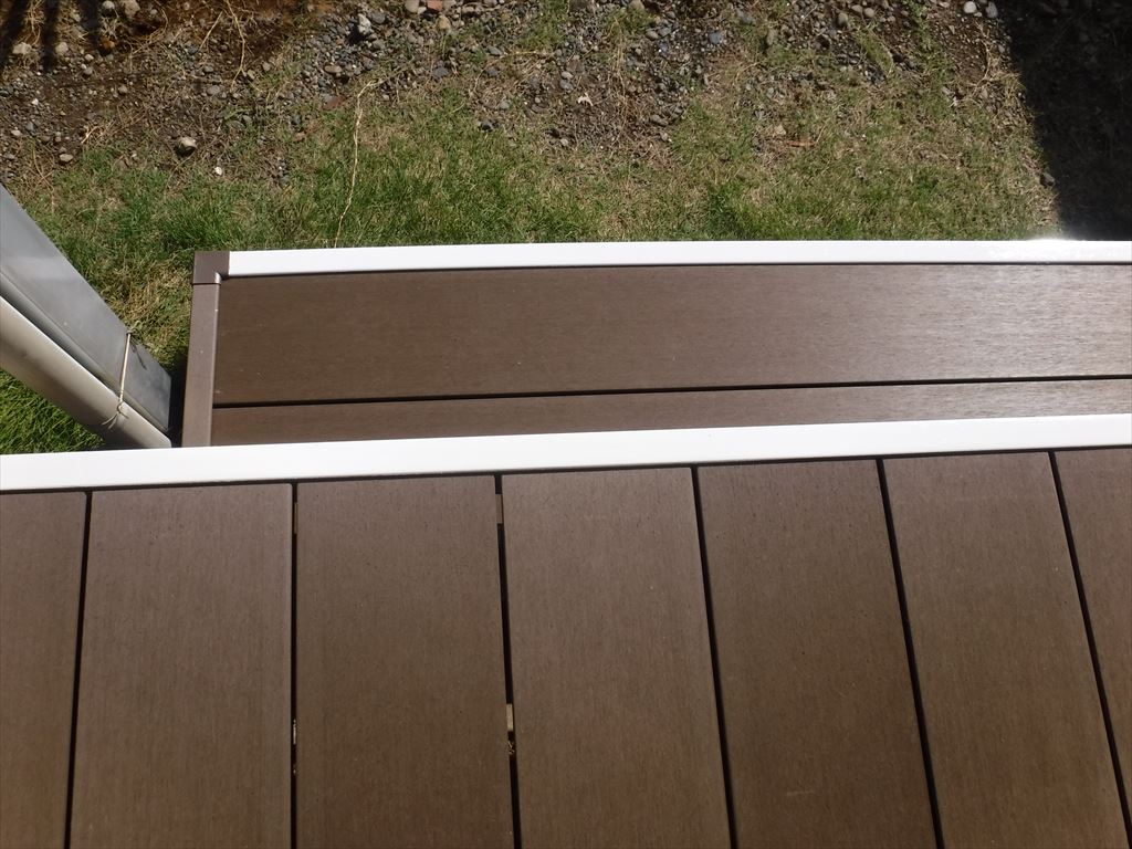 | 工事内容 | ウッドデッキ 端(ステップ部分と識別しやすいように)白色に塗装 ビニタイトプライマー |