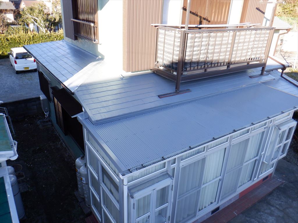 | 工事内容 | テラスの波トタン屋根塗装 色:グレー |
