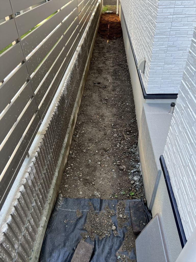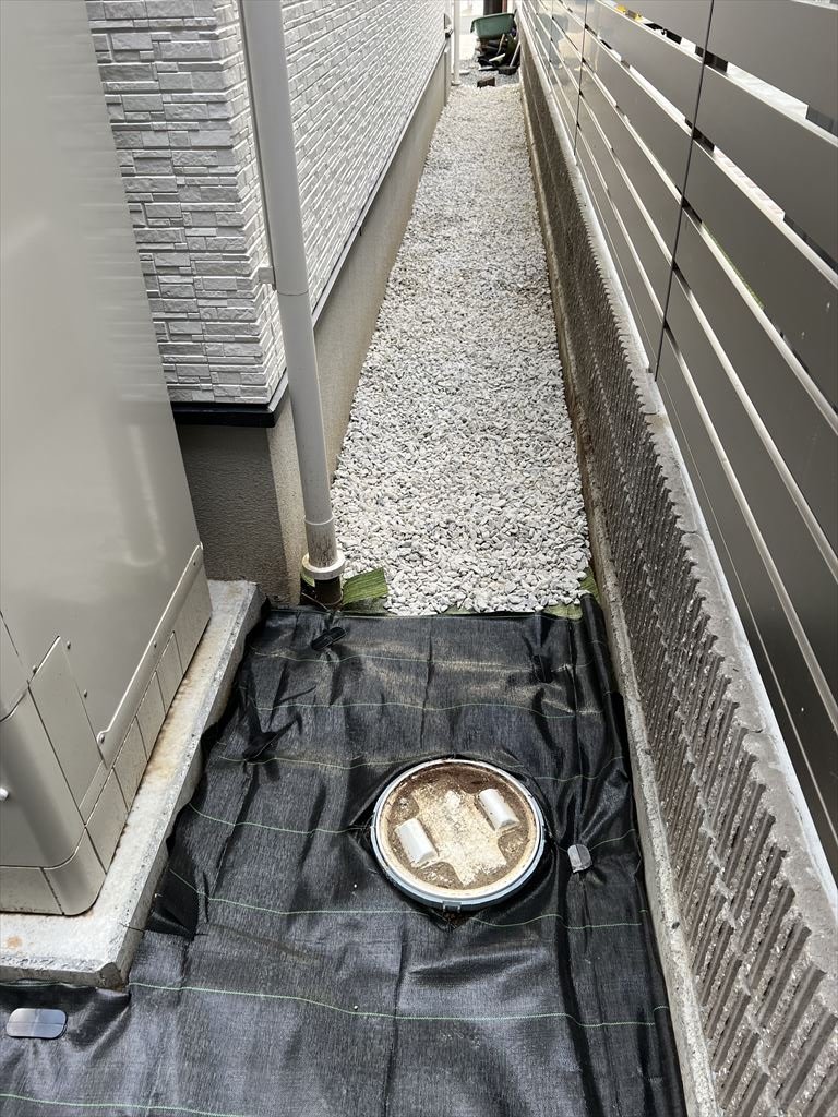 | 工事内容 | 新築引き渡し後 外廻りの工事 庭(北側) 砂利敷き |