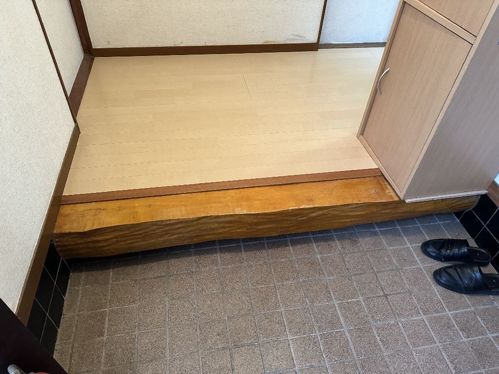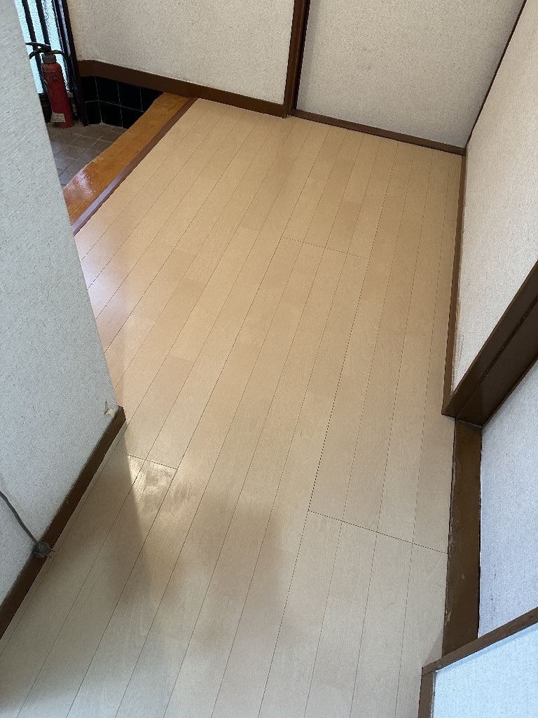 | 工事内容 | 玄関・廊下床補修工事 ノダ製 Jクラレス ペール色 玄関框部分見切り使用 |