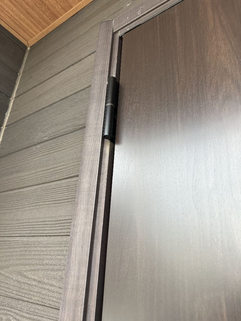 | 工事内容 | 玄関扉のみ取替工事 トステム リトビラ G15 色:クリエダーク 取手形状:S型 + ドアクローザー バックチェック付 2ストップタイプ |