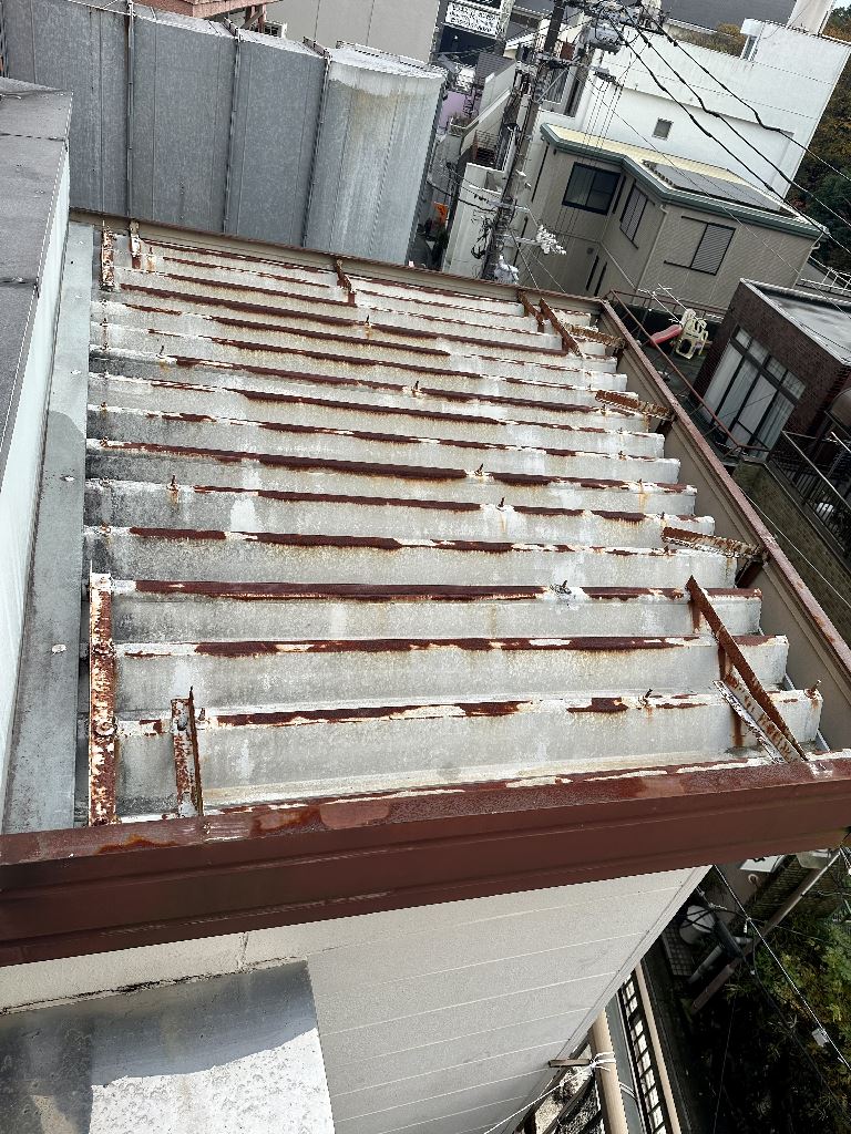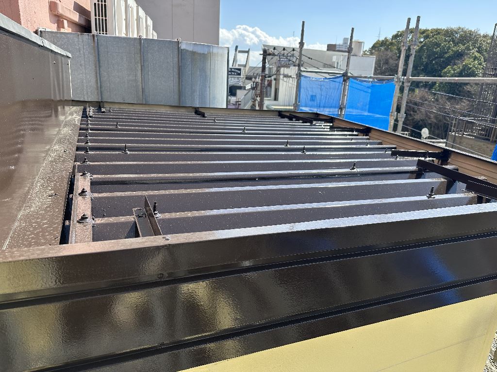 | 工事内容 | ビル改装 屋上プレハブ 折半屋根塗装 |