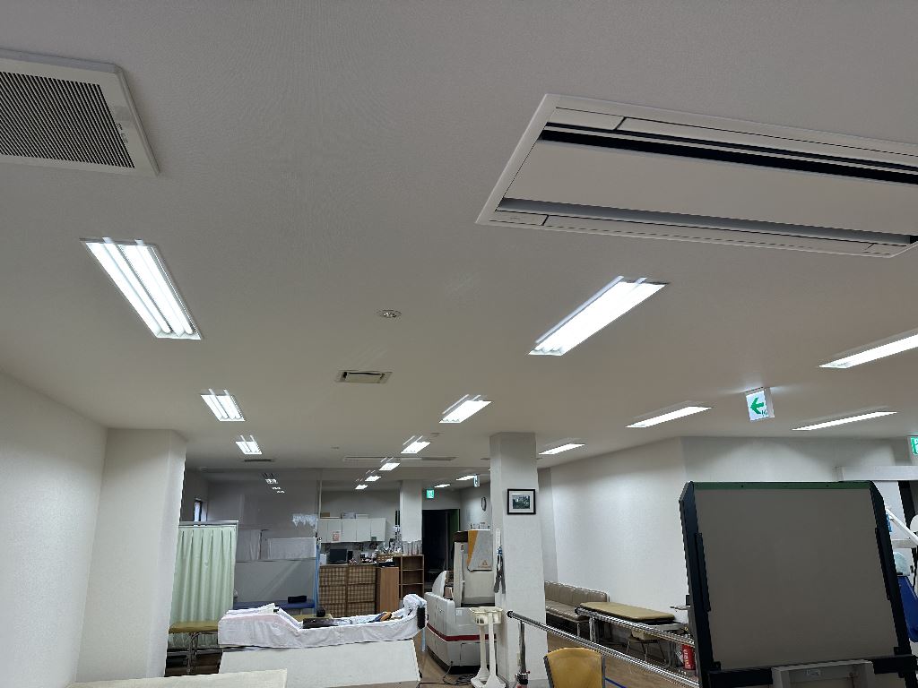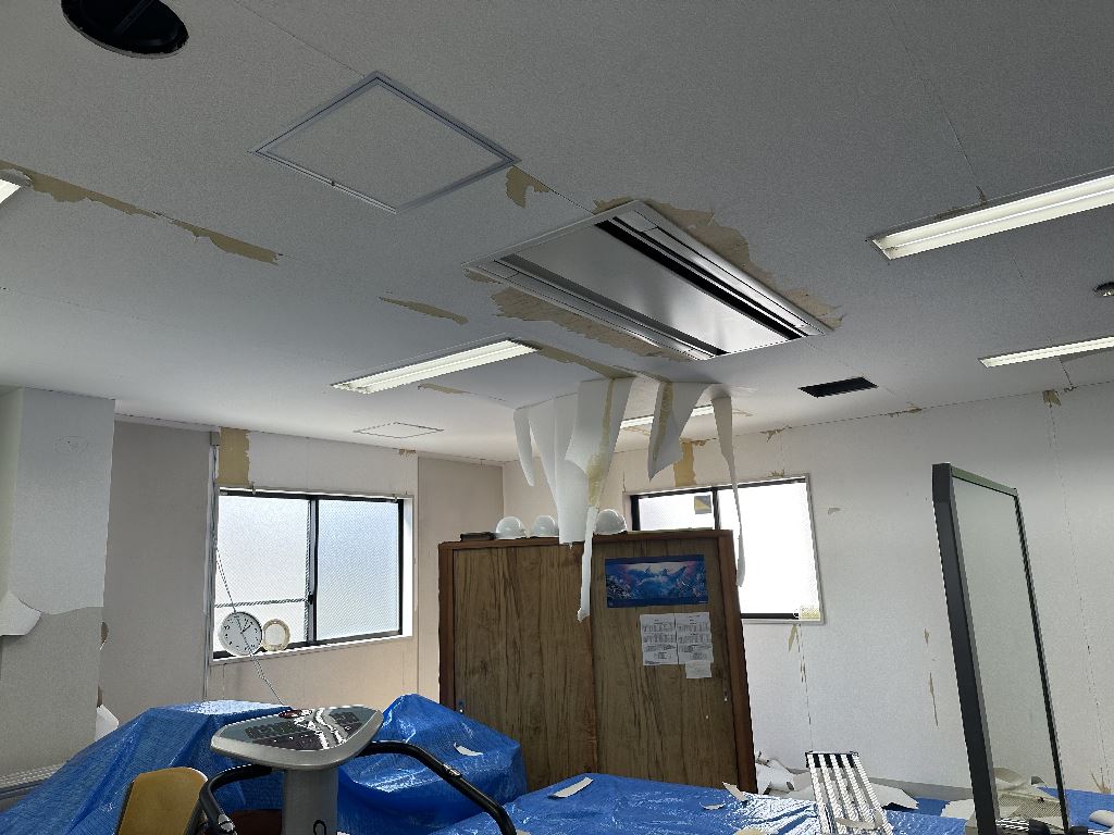 工事内容 リハビリ室の天井・壁クロス貼替え補修