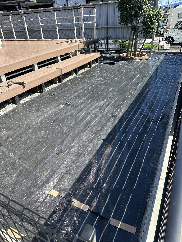 防草シートを敷き