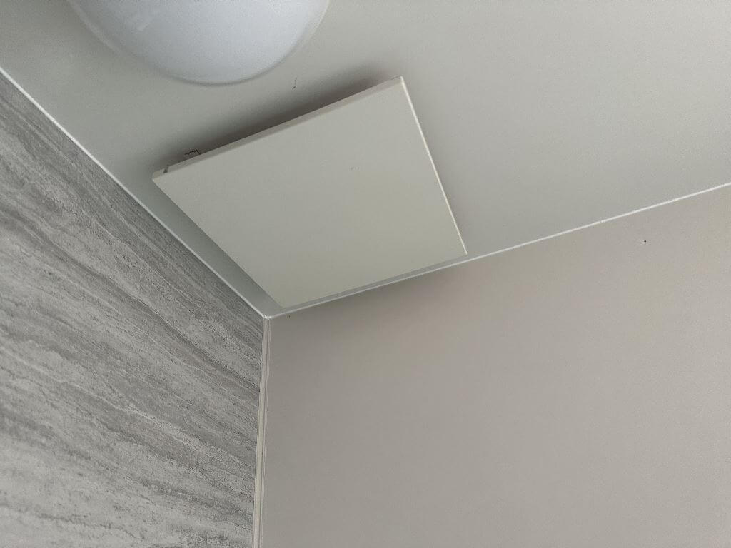 隅にあるので、この位置には暖房換気乾燥機は取付けられません。