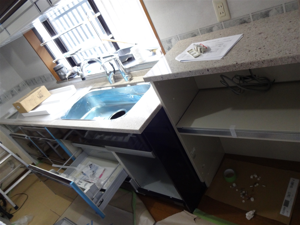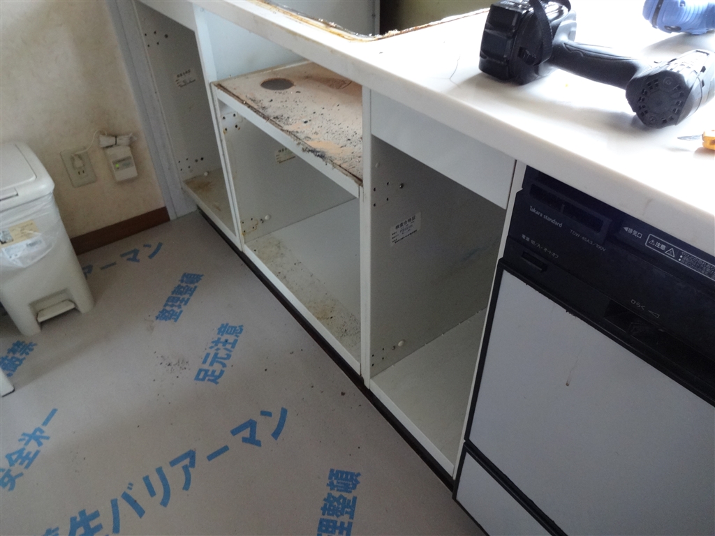 | 工事内容 | 既存キッチン解体・撤去 ⇒ 給排水設備工事 ⇒ 新規キッチン組立 |