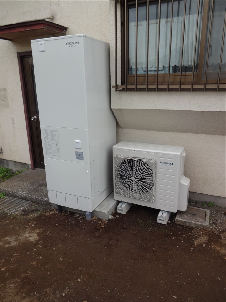 | 工事内容 | 灯油給湯器撤去・処分 ⇒ エコキュート設置 コロナ製 370L 角型 |