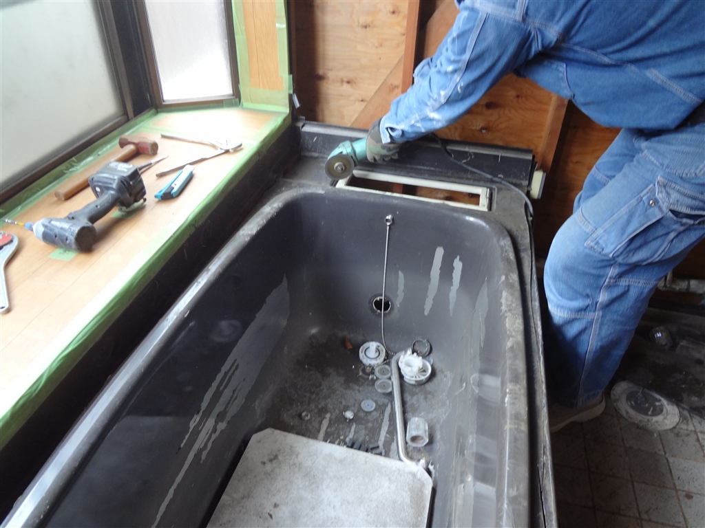 メーカー(タカラスタンダード)の方と事前に、システムバスの打ち合わせと実施致しました。何とかギリギリ設置できることを確認して、この出窓を活かすために養生(傷が付かないように保護)してから、工事に臨みました。