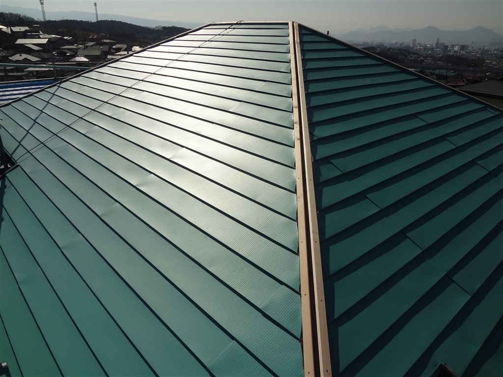 | 工事内容 | カバールーフ工法 ガルバリュウム葺き 色:緑青 |
