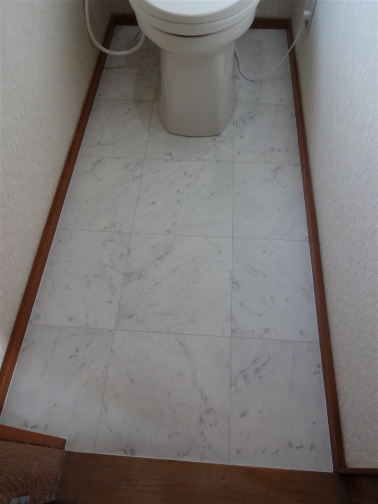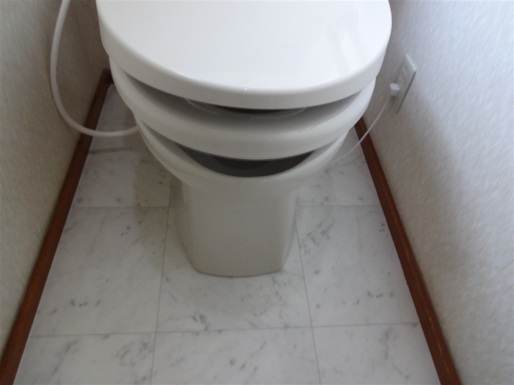 1Fのトイレは床を貼替えていただけるということで、排水管等も移設しました。しっかりとしたトイレになりました。