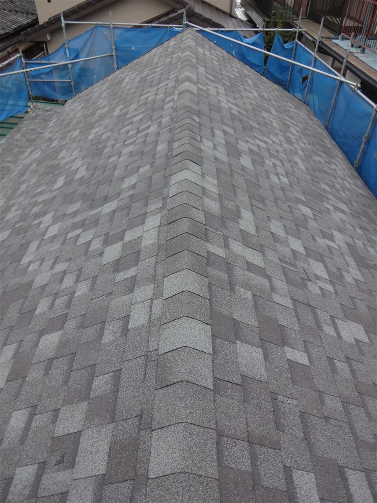 | 工事内容 | 瓦屋根~リッジウェイ葺替え 色:ハーバードスレート |
