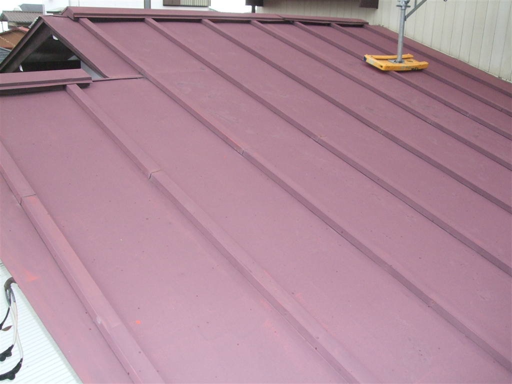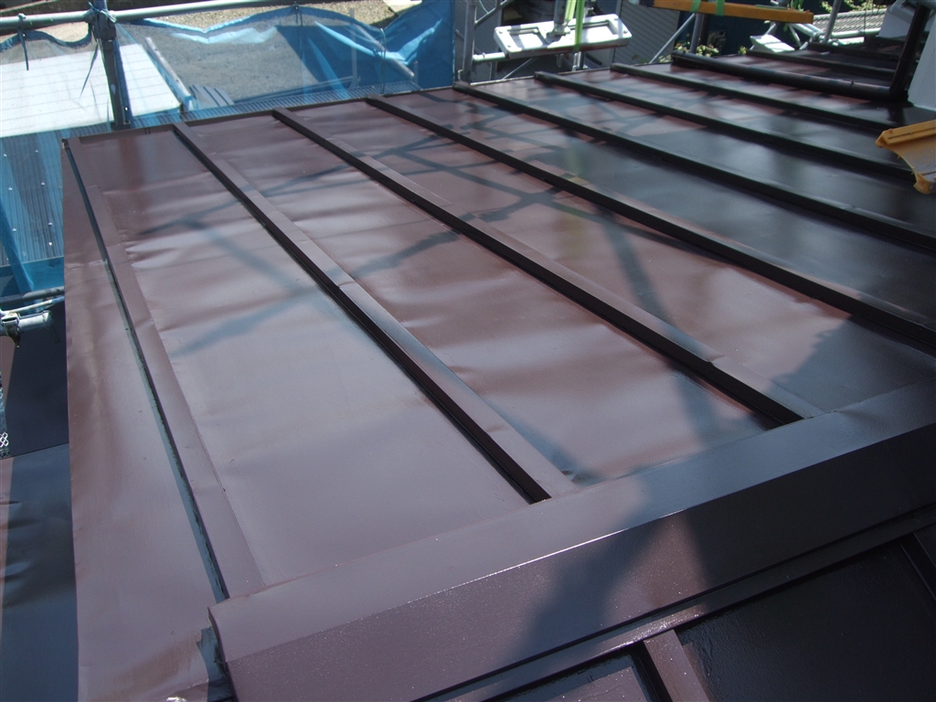 大屋根はさざなみトタンでしたが、下屋根は桟葺きトタン屋根でしたので、塗装工事となりました。