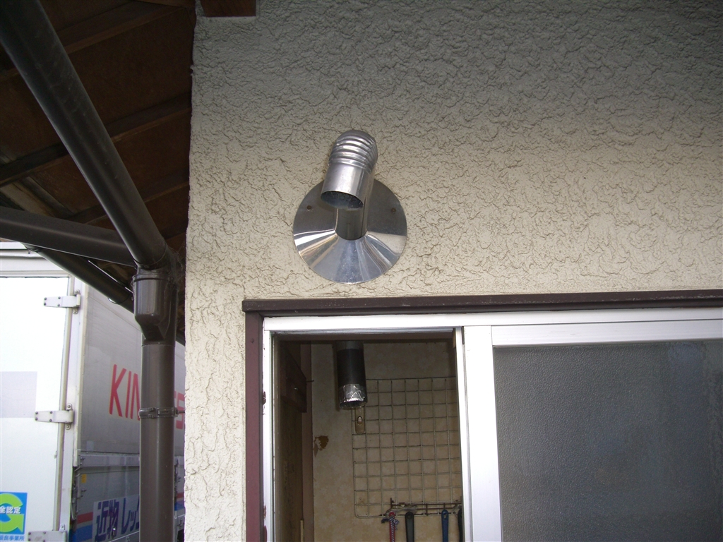 ガス給湯器の前が駐車場のため、側方排気カバーを取付けました。