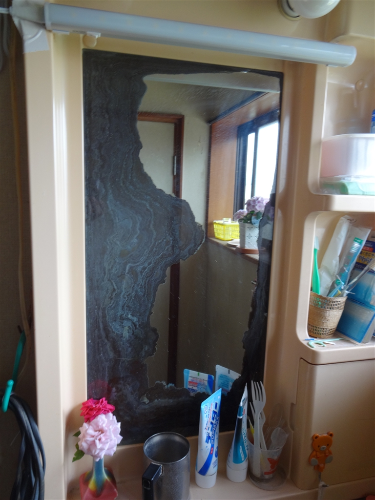 2Fの洗面化粧台は以前漏水されてようで、ミラーが少し変な感じになっておりました。床等に被害は全く無くてどうようにして、このようになったのか?全く分かりませんでした。が、工事を進めていくことで新しい配管に取替えることができたので、安心して暮らせると思います。
