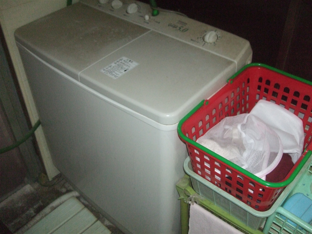浴室内に洗濯機を置いてあります。家の中から延長コードを利用して洗濯機を作動させておりました。