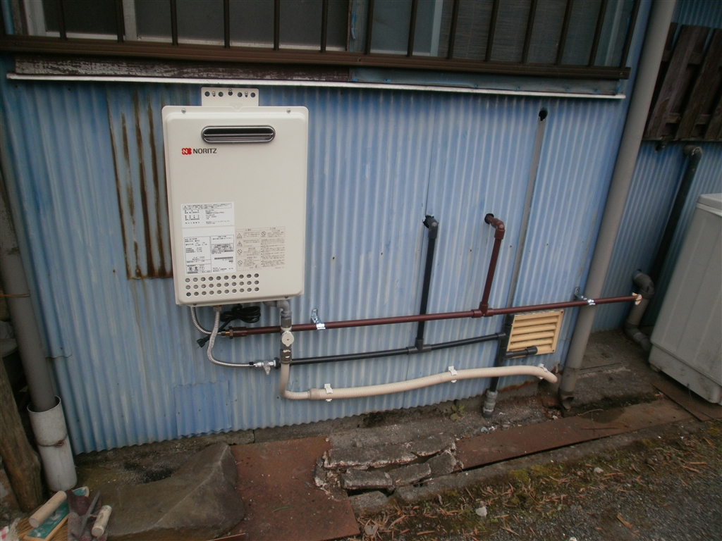浴室改装工事 ⇒ 浴槽・給湯器取替え 床タイル貼り 天井バスリブ貼り