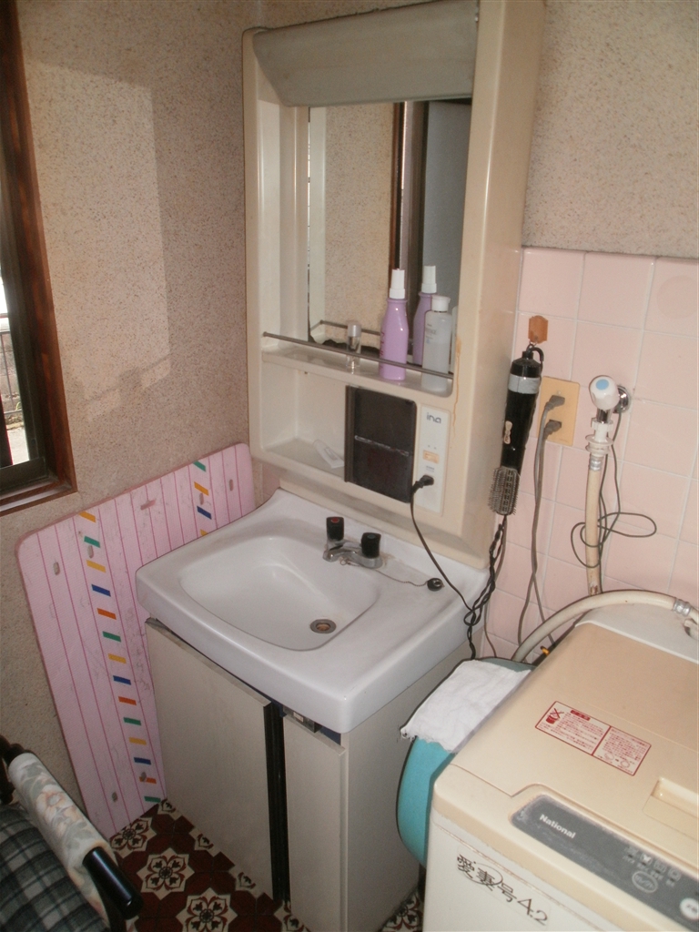 いつも脱衣場の床が少し濡れております。洗濯機?洗面化粧台?のどちらかが水漏れしているようです。この機会に洗面化粧台を取替えて、床も補修してください。