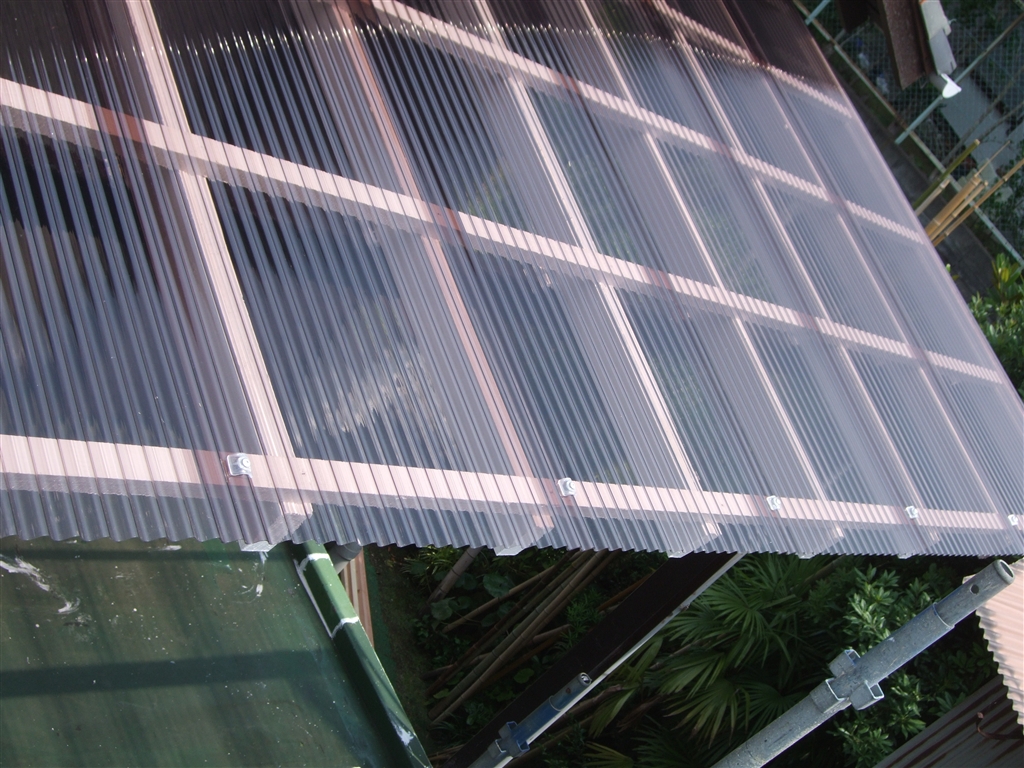 | 工事内容 | 漏水補修工事 テラス屋根 下地やり替え・ポリカ貼替え 雨樋取付 |