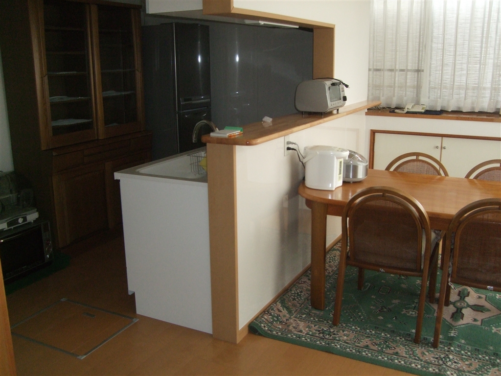 以前はこのような感じのL型キッチン(食卓から撮影)