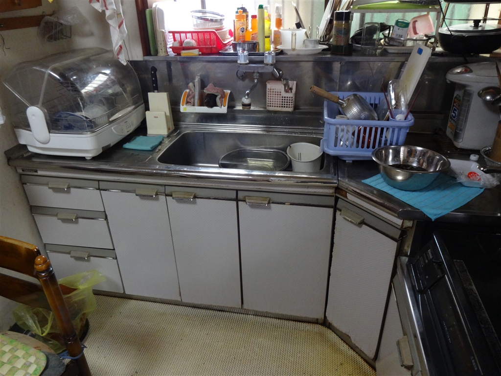 車を買換えようか?だけどうちの家は35年経って、何もしたことないけど・・・大丈夫なのか?やっぱり水廻りのリフォームを先にしてみよう!2Fの洗面所廻りと1Fのトイレ・キッチンは水漏れしたこともあったし、この機会に外の倉庫等も全て撤去しながら、リフォームの工事をお願いしました。現状のL型キッチンをそのままシステムキッチンに改装しようと思いましたが、莫大なリフォーム費用が掛かることを伝えられて悩んでいました。そんな時にリフォームのひろばの営業の方が、現状と似たようなキッチンを搬入すれば価格を抑えられて、希望通りの台所に仕上がる提案を聞きました。