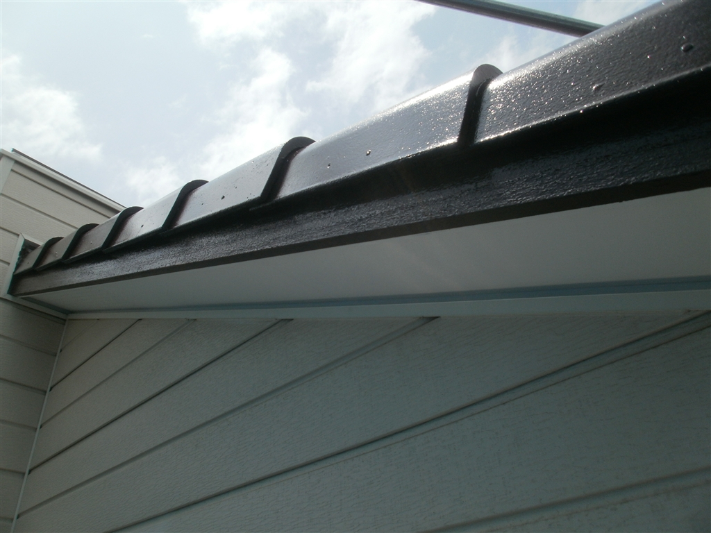 | 工事内容 | 破風板・軒天補修・雨樋取替え 角樋(サンドホワイト) |