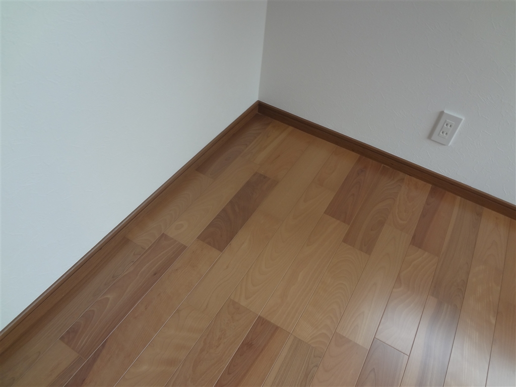 | 工事内容 | 新築 2F 階段左側洋間 Panasonic製 ジョイハードAフロア 色リアロチェリー ・ クローゼット扉 レセンテ 色リアロウォールナット ・ 天井 ダイケン クリアトーン |