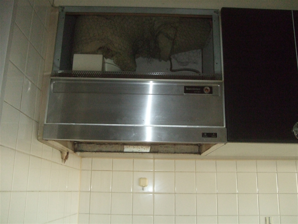 | 工事内容 | 中古マンション改装工事 キッチン タカラスタンダード製 シロッコタイプレンジフード取替え |
