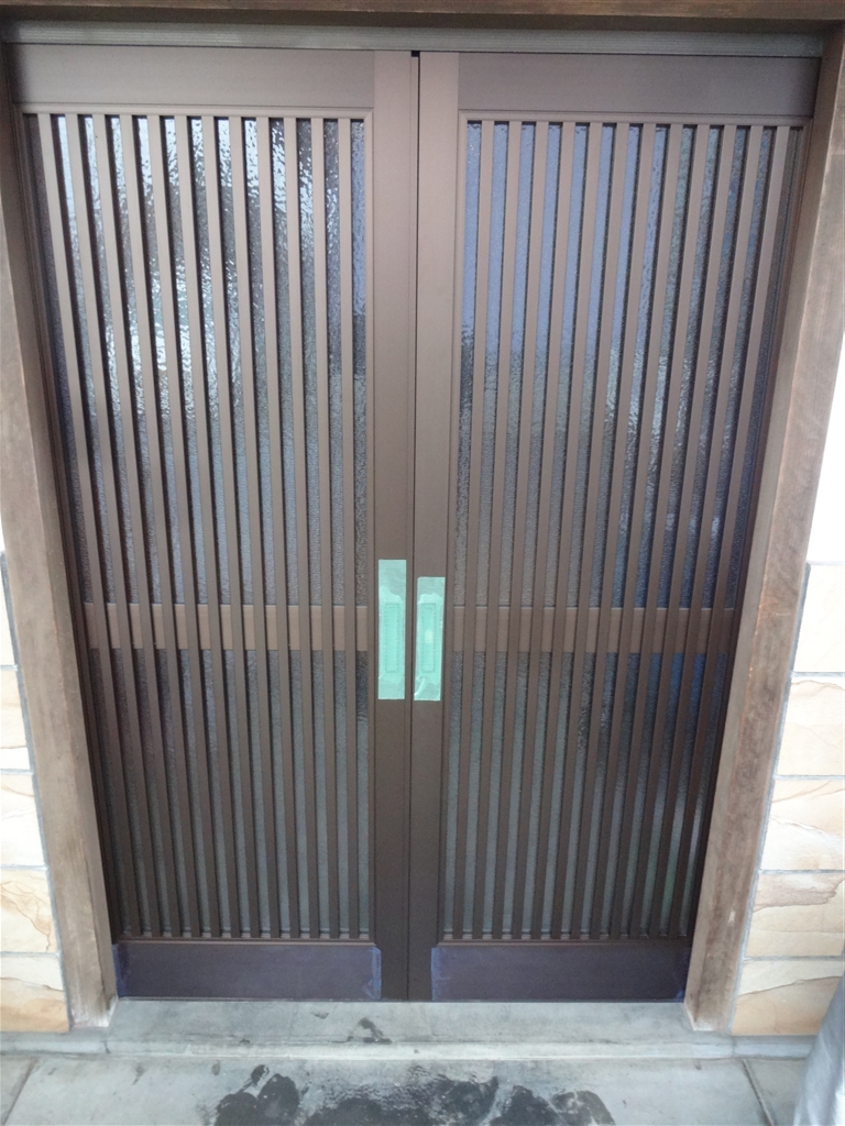 | 工事内容 | 玄関引分扉 サッシ障子のみ取替え 特注玄関サッシ C300 |