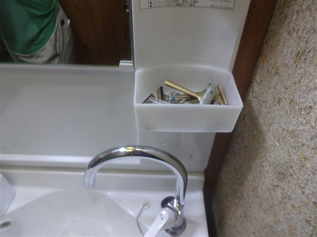この際廊下の洗面化粧台も、取替えることに致しました。水道管の補修を全ての水廻りの器具を、取替えることによって完全に補修することができます。