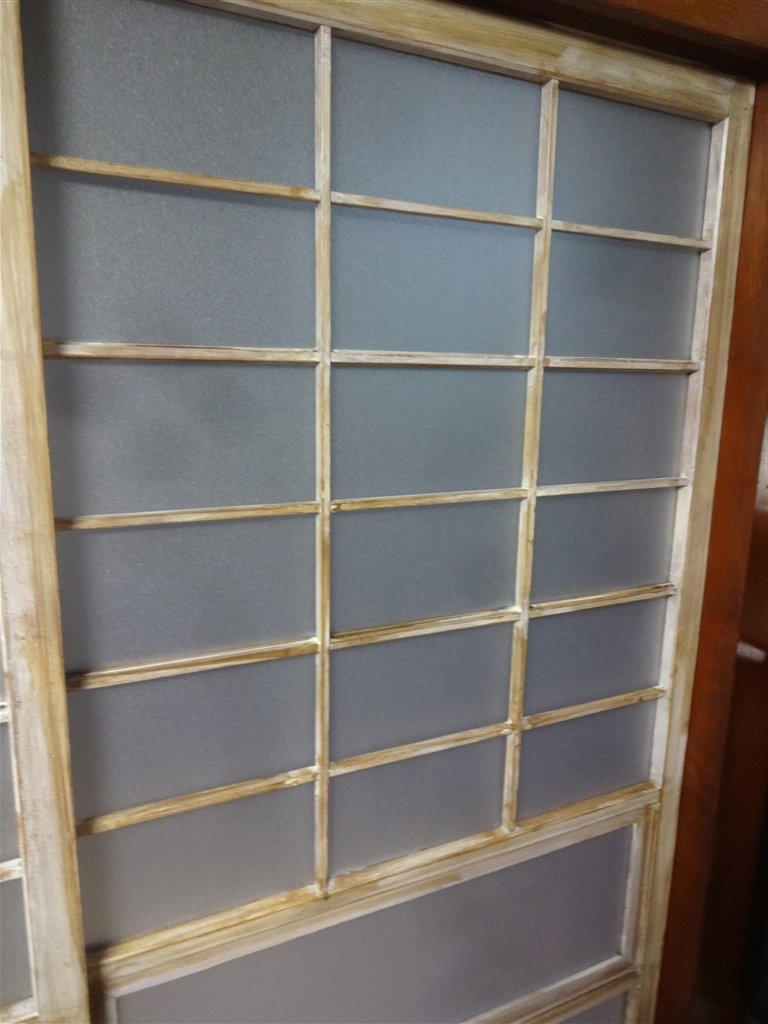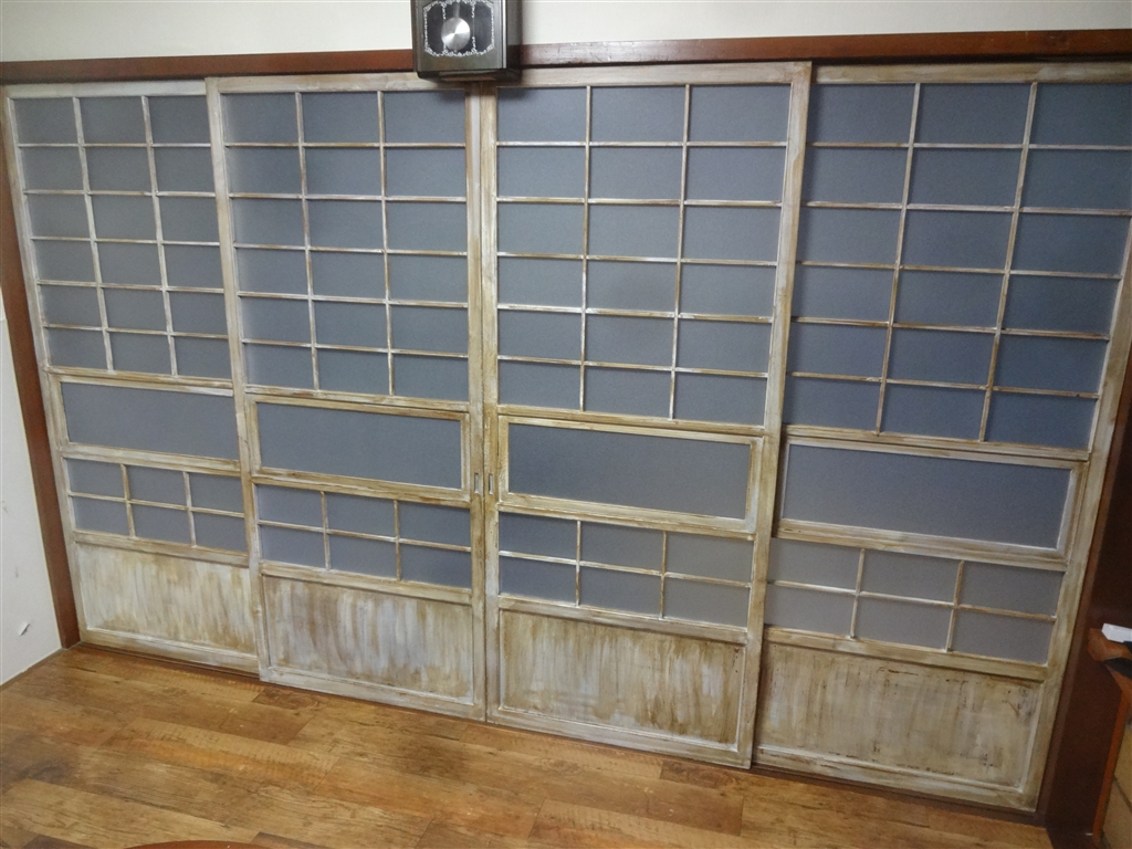 | 工事内容 | 住宅内改装工事 八畳間和室 ガラス障子 ⇒ ワーロントップ仕上げ |