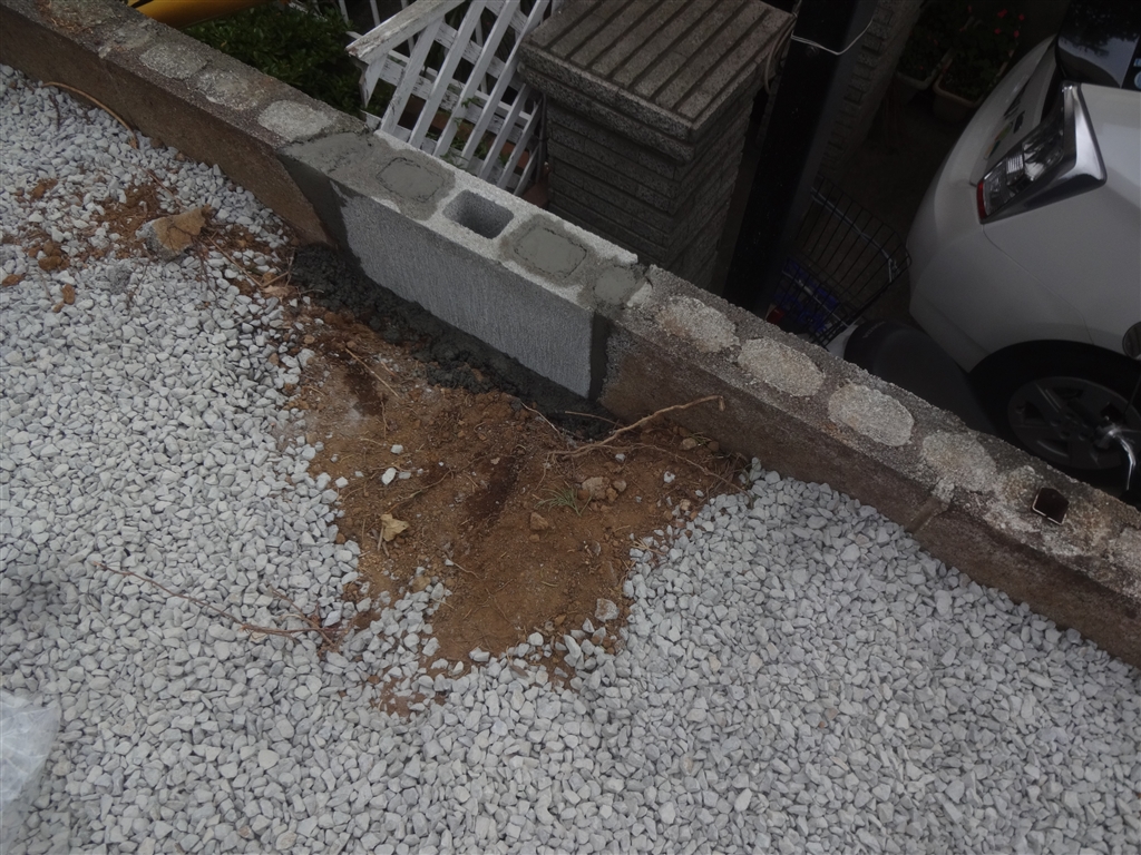 庭の木伐採・フェンス取替え・庭に石を捲きました。