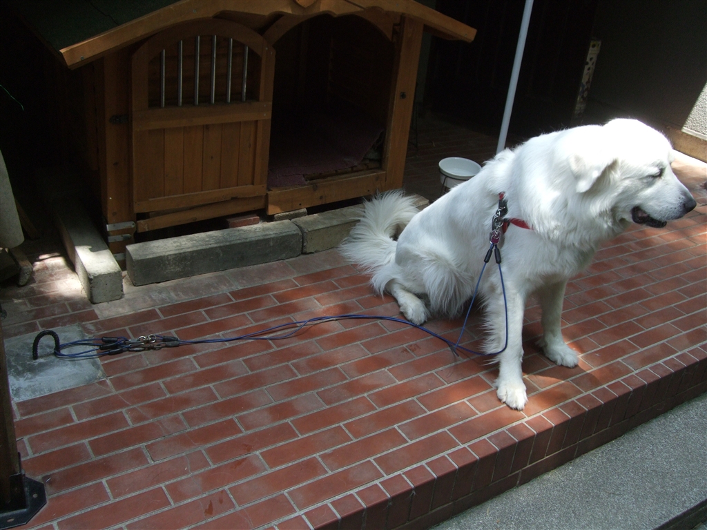 大型犬なので力が凄くていろんな物を破壊してしまいます。ですので丈夫なリングを埋めてください。小屋はネットで購入して取付けます。
