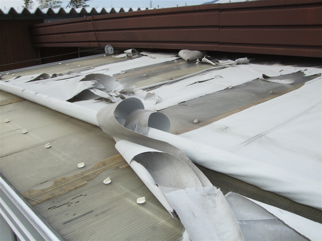 サンルームのロールスクリーン撤去して、屋根を補修してください!