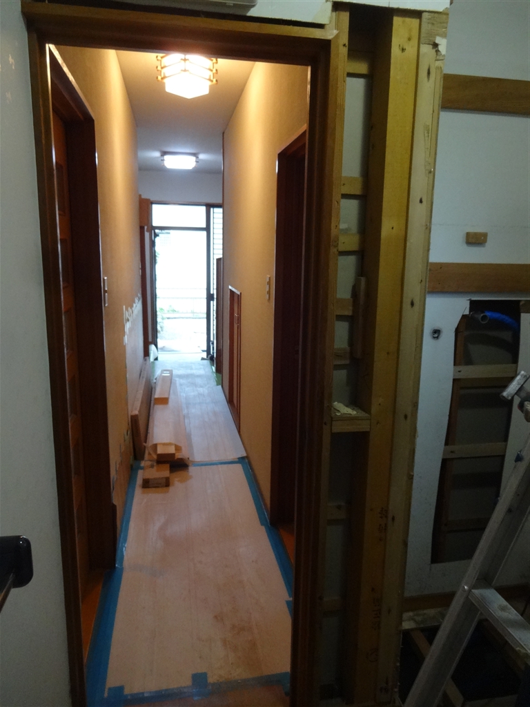 | 工事内容 | 脱衣場全面改装工事 ⇒ 脱衣場扉取替え 幅拡げて (W560 ⇒ W760)に変更 |