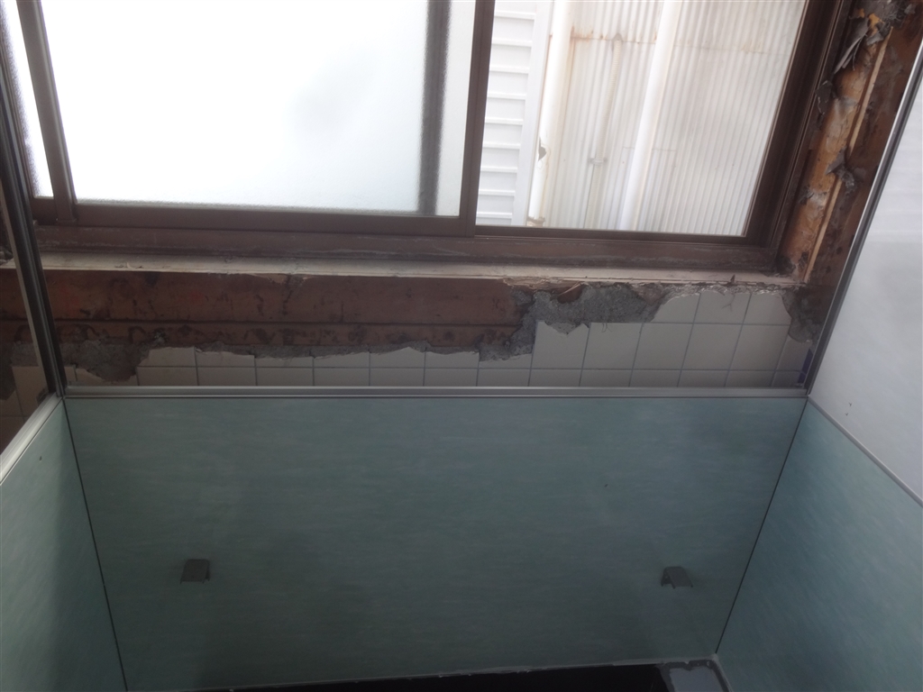 この施工事例では、窓が2つあることを取り上げてみました。どの現場の工事も、それぞれ不測の事態はつきものです。ある程度は何パターンか予測して準備して、工事に取掛ります。今回はたまたま予測できることができました。それは腐食等のアクシデントが無かったからです。とてもしっかりと家が建てられておりました。既設の浴室と比べて、サイズも1520から1318に狭めたことで、少し窓が出窓のようになりました。