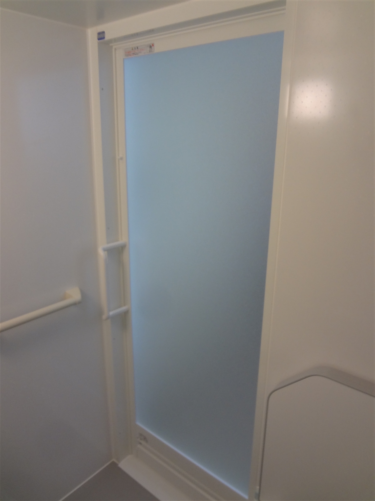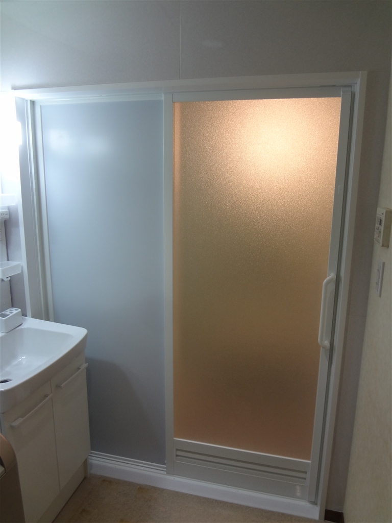 以前は跨ぐように入る、折戸タイプの浴室扉でした。